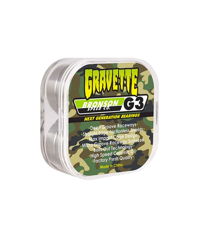 Bronson Speed Co is proud to release David Gravette’s signature G3 bearing. Gravette’s signature bearing features a camo and orange Pro Colorway and “Gravette” laser etched on the outside bearing ring. GO FAST, STAY FAST on David’s signature bearing.