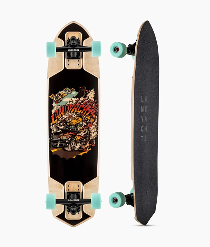 Will it freeride? Obviously. Will it also grip? Heck yes! Clayton Arthurs is one of the most versatile members of the Landyachtz team and he wanted his pro board to be able to make the switch from race track to slide jam just as comfortably as he can. The Blaze PT is designed to be equally effective with small slalom trucks on it for tons of grip, or with 155mm symmetrical trucks and freeride wheels for huge standup slides.