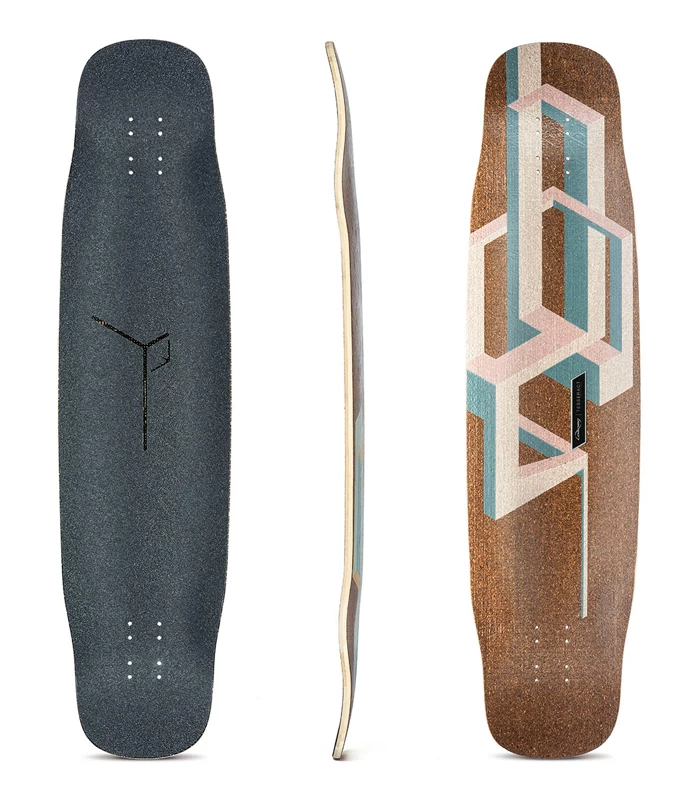 Stash the quiver, clear your mind, and let the Basalt Tesseract be your versatile companion in the quest for four-wheeled illumination. The Basalt Tesseract integrates rocker, wheel well flares, W concave, and multiple wheelbase options into a lightweight package designed for hilly descents, snappy slides, lofty ollies, techy manual combos, and cross-steps galore.