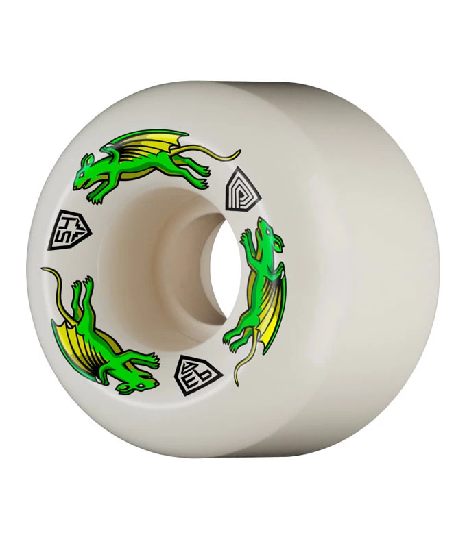 Dragon Formula™ is Powell Peralta’s latest next generation polyurethane breakthrough. Dragons are mid hardness 93A and 97A wheels that smooth out rough terrain. Now you can roll over previously unskateable terrain on your way to a skate spot, and then skate it as well or better than before with the same wheels. This is because dragons slide like 99A & 101A wheels and still grip when needed. This makes dragons very special and unique.