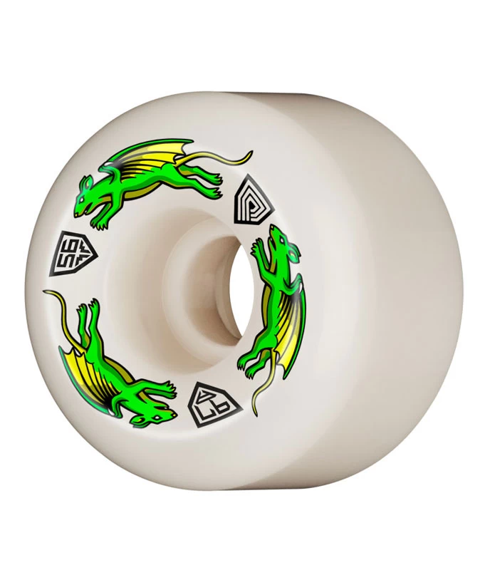About Dragon Formula: The amazing new Dragon Formula™ (DF) Urethane used to create these wheels is another industry leading innovation from Powell • Peralta. DF-93A Dragons will not only roll over rough terrain, but also grip and slide like 99A and 101A wheels do, so that you can do all your normal tricks and more on the greater range of skate terrains made skateable by its softer 93A hardness.