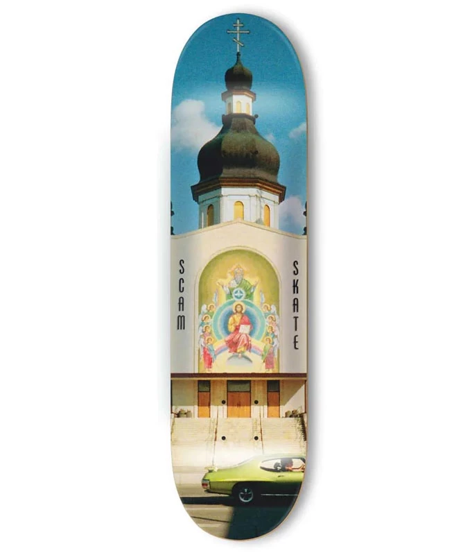 DESCRIPTION: Introducing the Holy Crail, a new photo series graphic from Scam Skate. The Holy Crail is a photo taken by skater/photographer/homie Colin Breckman right here in the city of Winnipeg. Perfectly timed with an old muscle car racing past the church, probably heading downtown for a skate sesh! Get yours today!