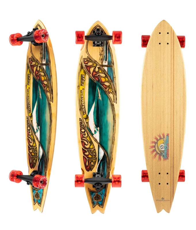 The Roots Bamboo Collection is a limited-edition Re-Issue including graphics depicting world class surf breaks with highly detailed artwork. This long-standing series of boards channels some of the original inspirations for Sector 9 both in performance and in style. Built for the speed and power needed to excel in a location like Tavarua, this extended swallow tale gives you the ability to press the gas and go. Whether you’re weaving through barneys or making a clean line down some open pavement the Fiji is your weapon of choice.