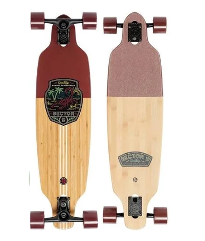 Whether it’s across the world, to the bottom of the sea, or the furthest reaches of space, it feels like this year’s boards are all about taking a trip. It makes sense considering we make skateboards, but the trip doesn’t always have to be so crazy or involved. We’ve taken the idea that a journey can be as easy as travelling to the beach for the day, and we’ve embraced that simplicity in the new Vagabond Bamboo Collection. The decks are dipped in dark, muted colors over Caramelized Bamboo bottom plies with natural Bamboo stringers. This simple treatment is complimented by clean badges showing various beach landscapes, created by returning illustrator and artist, Daniel Sheridan. We want you to get out there one way or another, and the Vagabond Bamboo Collection is a perfect start.