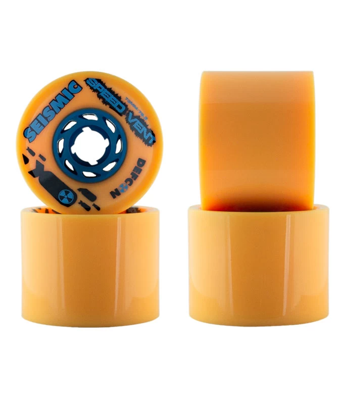 The 73mm by 54mm Seismic Speed Vent is molded around our proprietary weight-saving Energy Conversion (EC) hub – the first tall, wide hub seen in longboarding and still second-to-none. The 73mm diameter gives it the roll speed of a larger wheel, while the weight-saving hub adds the quickness and agility of a smaller wheel, as well as enhanced rebound. Combined with lips designed for pure grip, the Speed Vent stands in a class by itself.